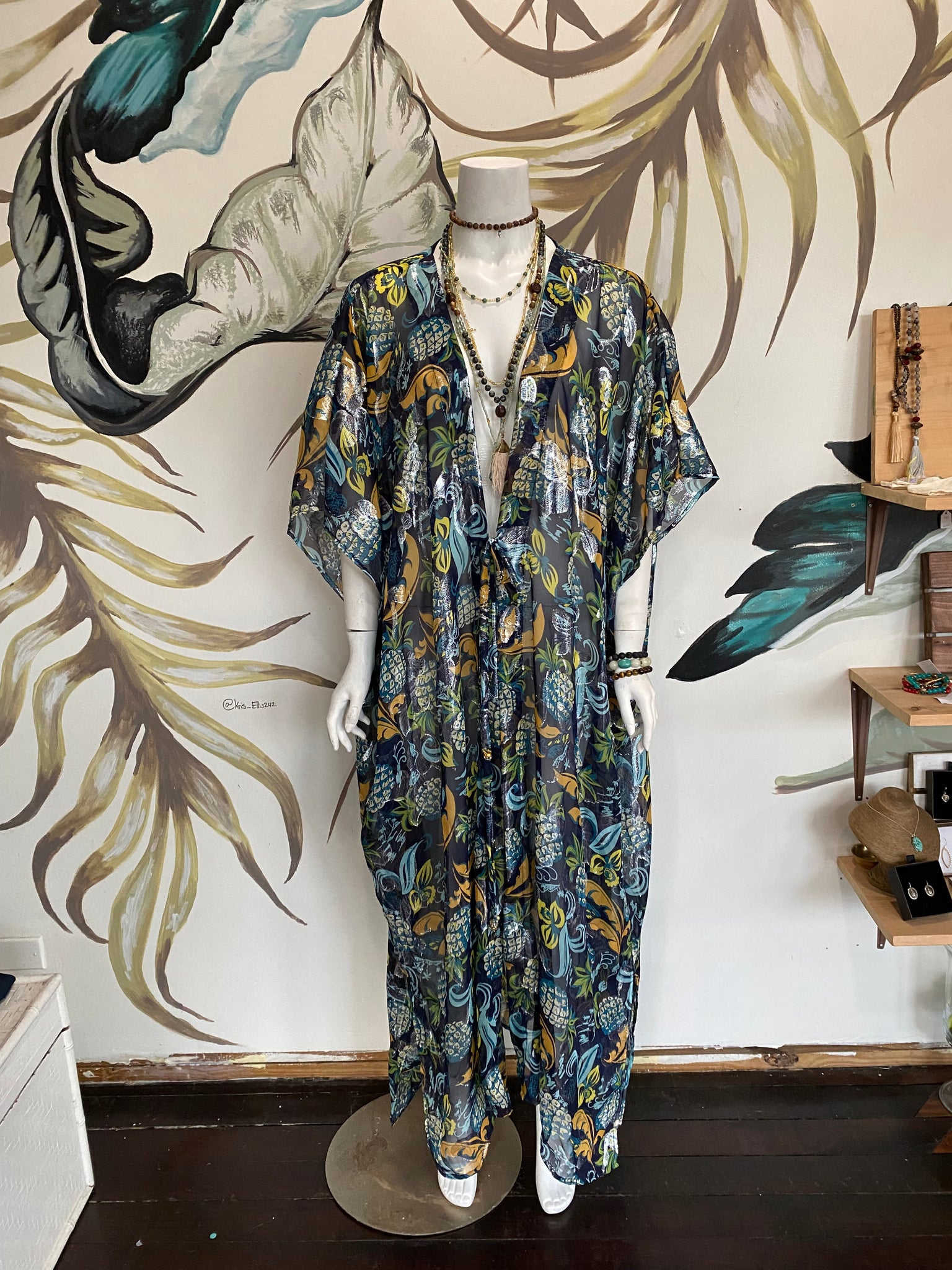 Elevate your wardrobe with our Kamala Kimono & Pant Set. This luxurious silk set features a beautiful metallic finish, beaded tie ends, and a versatile kimono and pant design. Perfect for any occasion, this set adds a touch of glamour and sophistication to your style.